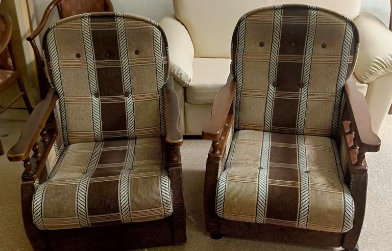 *октябрь 2017 - полностью заменен поролон в подлокотниках и сиденьях. Перетянуты в современный велюр красивого шоколадного цвета.