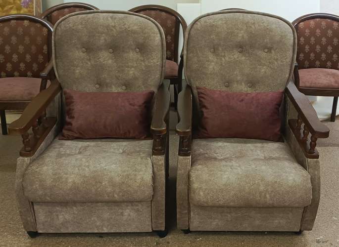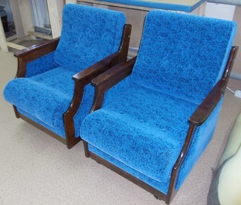 *октябрь 2014 - кресла-кровати с механизмом трансформации "малютка" перетянуты во флок на флоке, полностью заменен наполнитель, как на спальном месте, так и на подлокотниках.