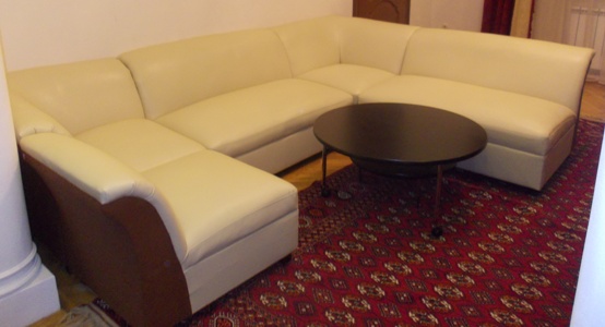 *май 2011 - комплект диван+2 кресла перетянуты в натуральную итальянскую кожу экстра-класса, в дополнение к комплекту перетянуты стулья.