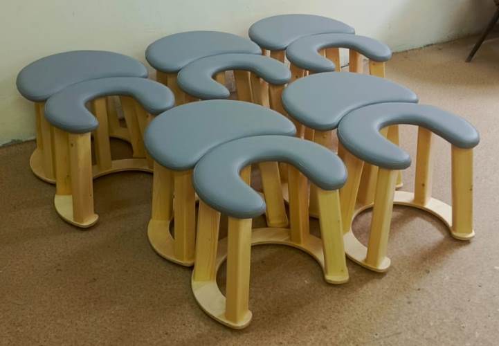 *обладателями этих 9-ти ярких табуретов стали Чебоксары. Стульчики отправились в различные перинатальные центры и роддома республики Чувашия. У всех табуретов ножки - безцветный лак, мягкий верх - медицинская искусственая кожа производства Индия, цвета - ярко-салатовый, желтый, оранж, сиреневый и так многим полюбившаяся бирюза.