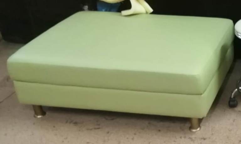 *сентябрь 2021 - диван и пуф перетянуты в искусственную кожу нежного фисташкового цвета