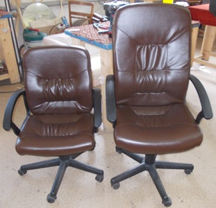 *№1 перетянуто в искусственную эко-кожу, №2 - от кресел был только металлический каркас. Восстановлены и перетянуты в искусственную кожу 5-ой категории.