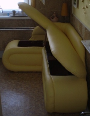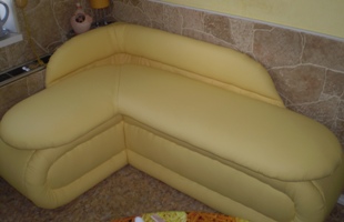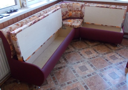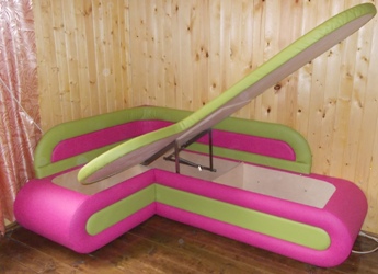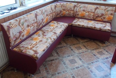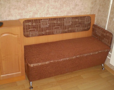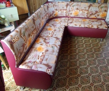 *диван кухонный выполнен под размер стола заказчика. Имеет 2 больших отделения для хранения, центральная часть двухсторонняя, что позволяет использовать ее и как сиденье и как столик. Материал основы - березовая фанера, обивка - искуственная кожа 5-ой категории и искусственная замша. Пороизводство компании "Вероника".