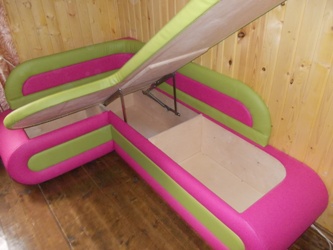 *по просьбе наших коллег, занимающихся изготовлением кухонь, был изготовлен диван-тапчан из ППУ стандартной жесткости россиийского производства и микрофибры двух цветов. Каркас стенок выполнен из склеенного ЛДСП, предоставлен нашими коллегами.