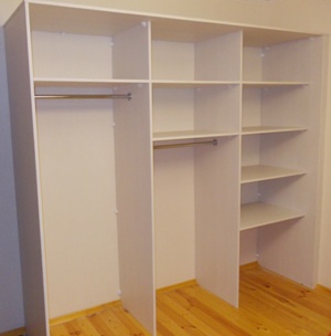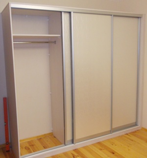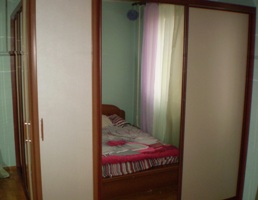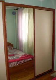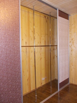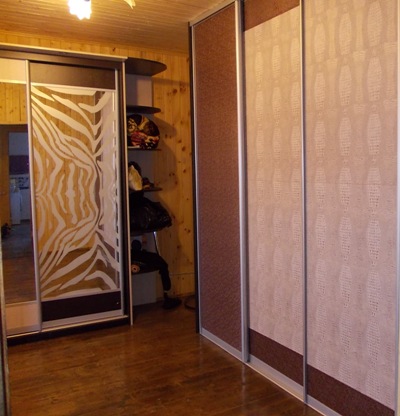 *Встроенный шкаф-купе, двери декорированы искусственной кожей различных текстур, подобранных по цвету и стилю к уже имеющемуся шкафу в комнате. Наполнение максимально свободное. Производство компании "Вероника".