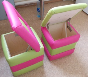 *пуфики изготовлены из влагостойкой фанеры, материал тот же, что и на диване. Стиль, декоративные строчки - аналогичны дивану заказчика.