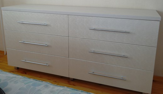 *комод декорирован искусственной кожей коллекции Сохо, цвет белый перламутр. Производство компании "Вероника"
