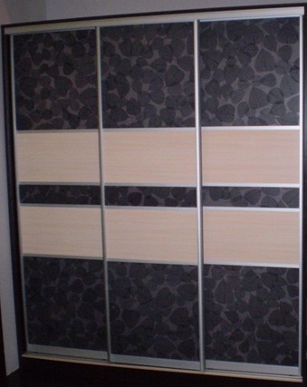*размер: 2750х2100х500 (ВхШхГ), три двери, декорированные натуральными обоями Листья Прима, цвет "Ахумадо". Производство компании "Вероника".