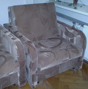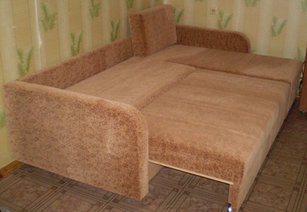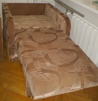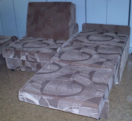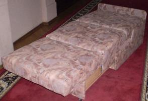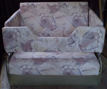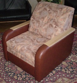*с антивандальными подлокотниками из массива дуба. Механизм трансформации - выкатной. Размеры: 900х720х950мм (ГхШхВ), спальное место 600х1900мм (ШхД). Выполнено в искуственной замше и искусственной коже 5-ой категории. Пороизводство компании "Вероника".