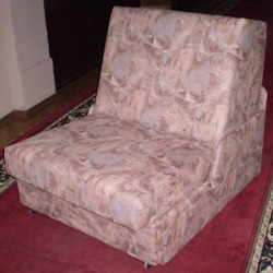 *размеры: 1000х750х950мм (ГхШхВ), спальное место 750х1950мм (ШхД), механизм трансформации - аккордеон. Данная модель без подлокотников, что немаловажно в малогабаритных помещениях. Подходит как для офиса, так и для дома. Выполнена в искусственной замше. Производство компании "Вероника"