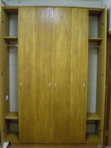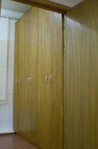 *размеры: 2500х1800х500 (ВхШхГ). Шкаф из массива сосны. Трехсекционный, каждая секция рассчитана на шесть человек. В каждой секции 2 полки, перекладина для "плечиков". Изготовлен по индивидуальным размерам помещения и эскизу заказчика. Возможны любые варианты размеров и внутреннего наполнения из ЛДСП и массива других пород дерева (дуб, лиственница и т.д.) Производство компании "Вероника".