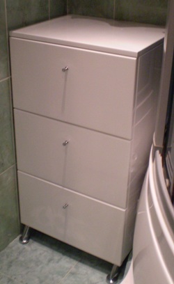 *размеры: 900х520х420. Изготовлен по индивидуальным размерам заказчика из МДФ 18мм. Покрытие - водостойкая глянцевая эмаль. Три объемных ящика на шариковых направляющих полного цикла выдвижения. Производство компании "Вероника"