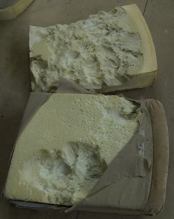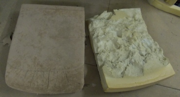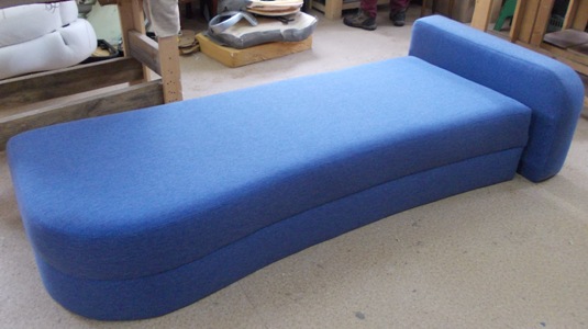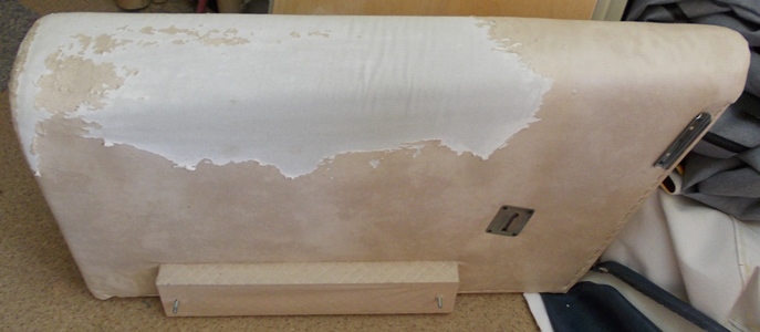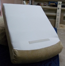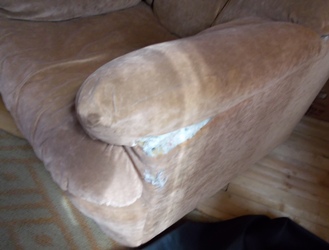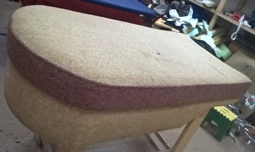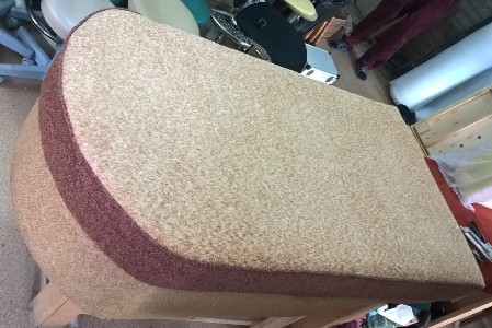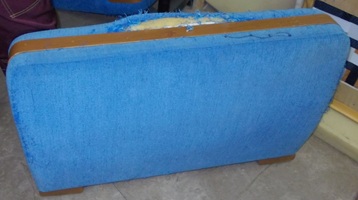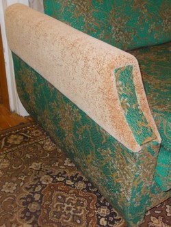 *август 2013 - подлокотник дивана сделан практически "с нуля" - края закруглены, наклеен новый поролон, обтянут флок на флоке 7-ой категории.