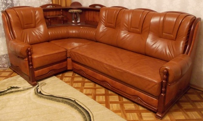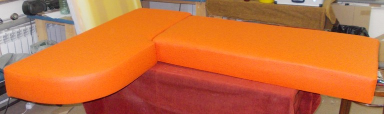 *январь 2017 - сиденья углового дивана типа "Атлант" перетянуты в искусственную кожу 5-ой категории, подобранной по цвету к основе дивана.