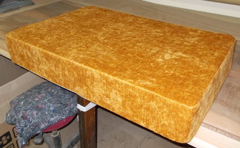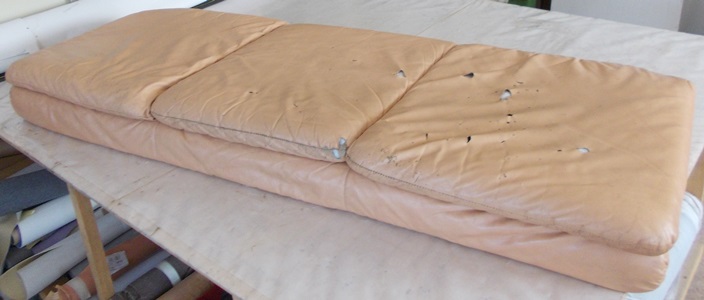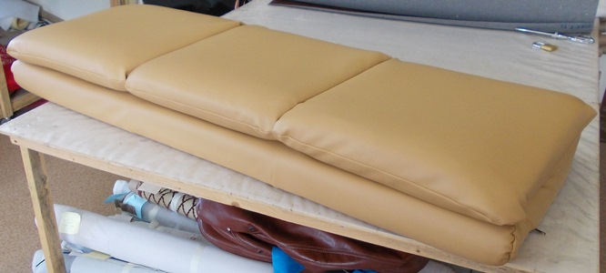 *январь 2017 - подушки (сиденья) от дивана с французской раскладушкой перетянуты в Арпатек 12-ой категории (тест Мартиндаля 1 000 000 циклов), цвет - светлое золото.