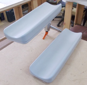 *литые подлокотники кресла для забора крови перетянуты в искусственную медицинскую кожу Denkart, производство Германия. Чтобы осуществить подобную перетяжку была сделана специальная выкройка и доработана конструкция подлокотников для возможности крепежа материала.