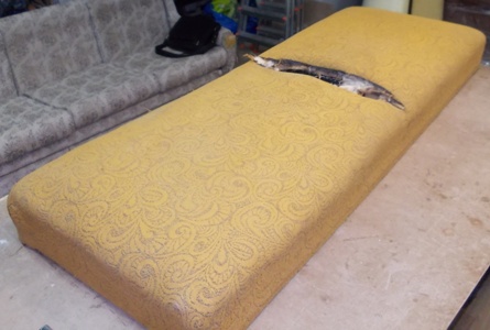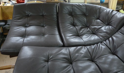 *август 2013 - испорченная сидушка дивана из натуральной кожи перетянута в искусственную кожу 9-ой категории, что дало возможность значительно сократить расходы заказчика без потери качества.