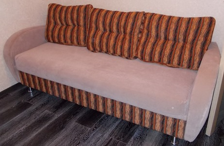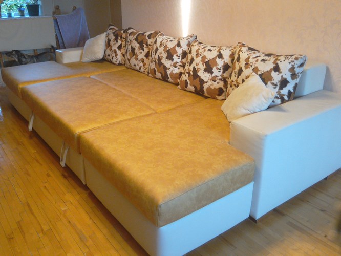 *сентябрь 2015 - сиденья диванов с французской раскладушкой перетянуты в искуственную кожу 5-ой категории.