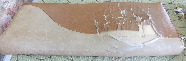 *январь 2020 - сиденье кухонного дивана перетянуто в искусственную кожу двух цветов, погрызенный поролон отреставрирован.