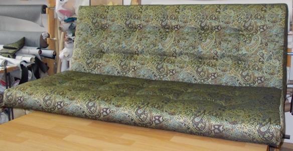*октябрь 2018 - спинка и сиденье (складной матрац) малазийского дивана перетянуты в жаккард коллекции "Сансара"