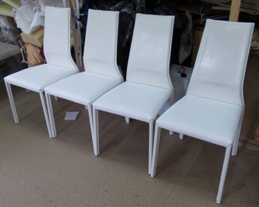 *№1 - сиденья стульев перетянуты с заменой ППУ в жаккард; №2 - в искусственную кожу Арпатек 12-ой категории (тест Мартиндаля 1 000 000 циклов), производство Нидерланды; №3 - спинка перетянута аналогичным образом тоже в Арпатек; №4 - сиденье барного стула перетянуто в натуральную кожу экстра-класса, производство Италия.