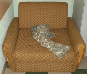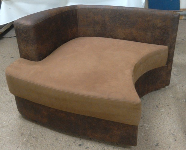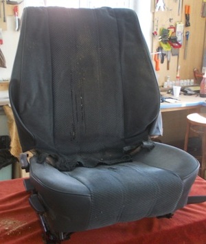 *август 2013 - сиденье, подлокотники и спинка перетянуты в антивандальный флок 12-ой категории, низ и задник оставлены "родные", в искусственной коже.