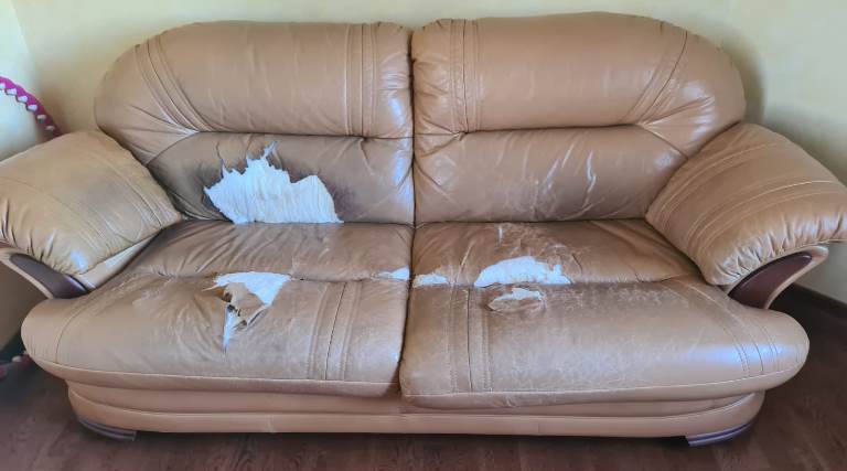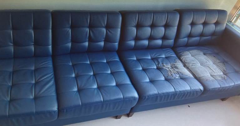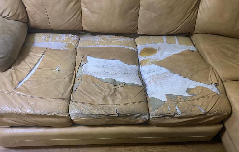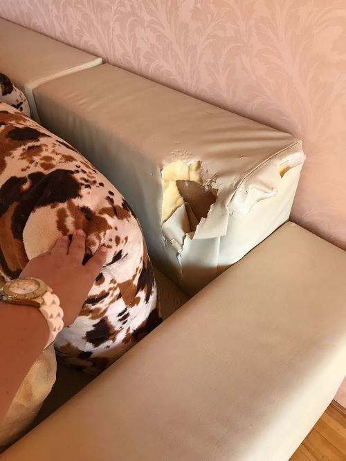 *январь 2020 - спинки-подушки дивана из натуральной, но рулонной кожи, (что и привело к печальным последствиям через какое-то время) перетянуты в микрофибру "Меркурий" - надежная, износостойкая, на тостой основе ткань.