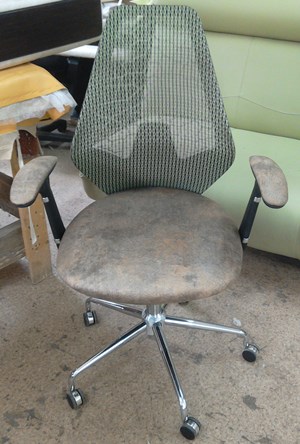 *№1 - сиденье и подлокотники современного офисного кресла из сетки перетянуты в мебельный велюр коллекции "Лофт", так же заменен наполнитель на новый ППУ.