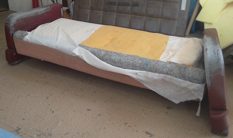 *сентябрь 2013 - пружинный матрац на древянном каркасе отремонтирован и перетянут во флок на флоке.