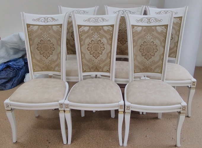 *август 2023 - сиденья стульев перетянуты в искусственну замшу.