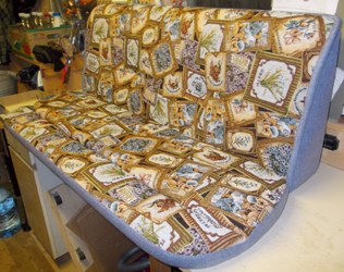 *август 2013 - спинка и сидушка от кухонного уголка перетянуты в гобелен, предоставленный заказчиком.