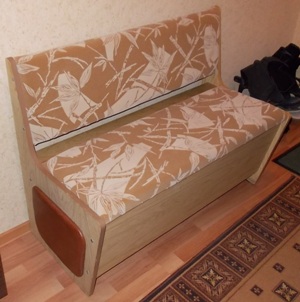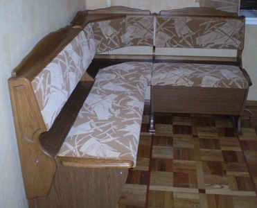 *октябрь 2014 - перетянут во флок "Умная ткань" 12-ой категории, изготовлен дополнительный короб для большой части кухонного уголка.