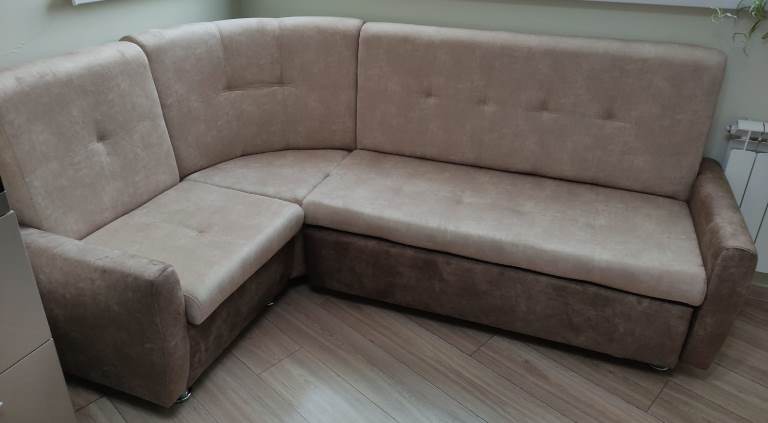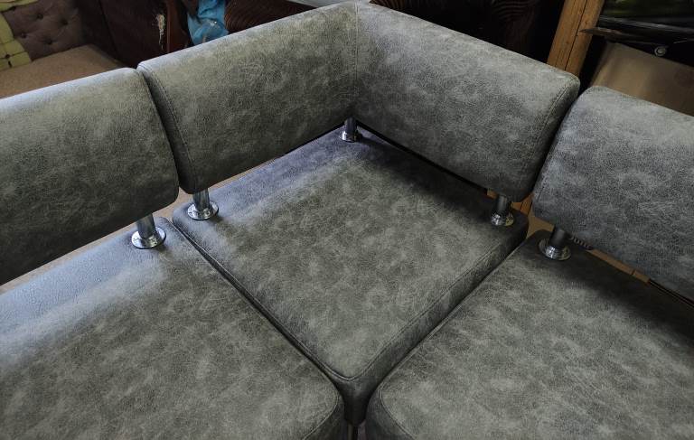 *январь 2023 - кухонный уголок перетянут в новую колекцию искуственной замши Кипрус - очень мягкая и приятная на ощуть, отлично чистится. Цвет наиболее приближен к оригиналу. В сиденьях заменен наполнитель.