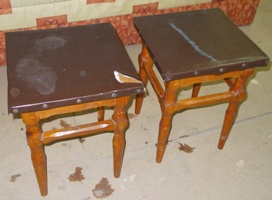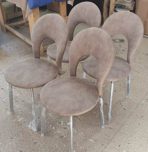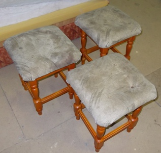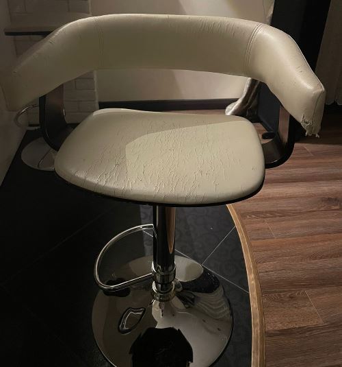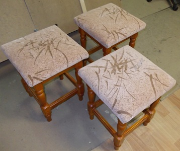 *у стульев и барных табуретов изготовлены новые сиденья из фанеры и перетянуты во флок на флоке 8-ой категории.