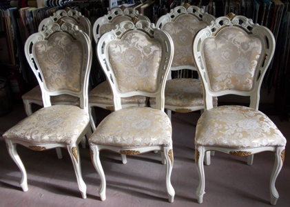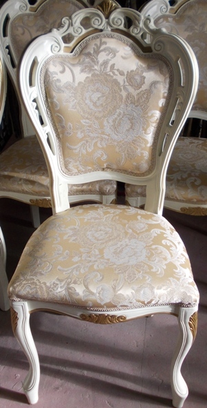 *белорусские стулья перетянуты в жаккард, окантовка - золотистая тесьма, элементы стульев, выполненные золотой краской, отреставрированы - стулья получили новую жизнь!