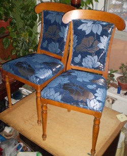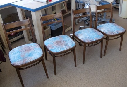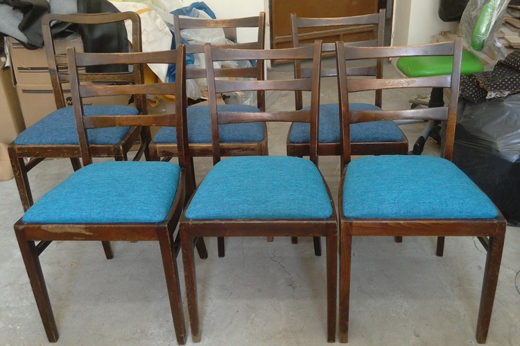 *стулья склеены, заменен наполнитель, перетянуты в рогожку двух оттенков синего - васильковую и бирюзовую - тренд сезона 2020 года.