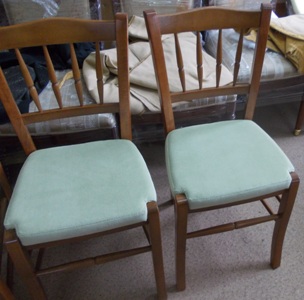 *стулья перетянуты в современную рогожку бледно-зеленого цвета. Полностью заменен наполнитель.