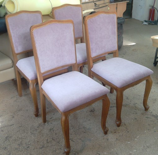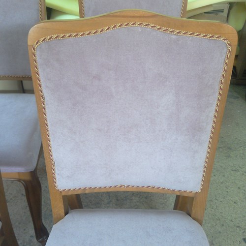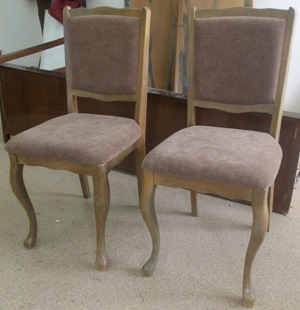 *стулья заново склеены, деревянные части отреставрированы, заменен наполнитель сидений и спинок, перетянуты в современный текстурированный велюр.