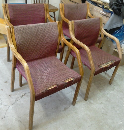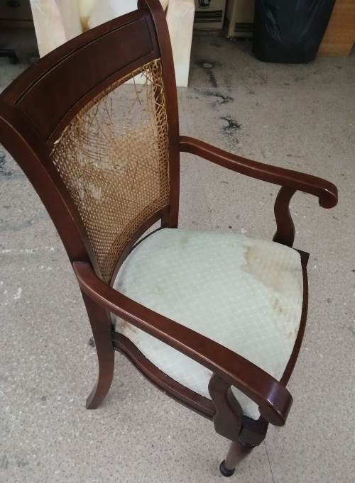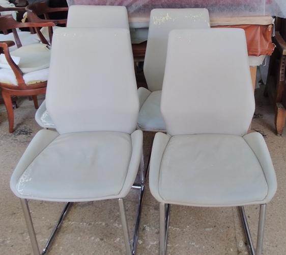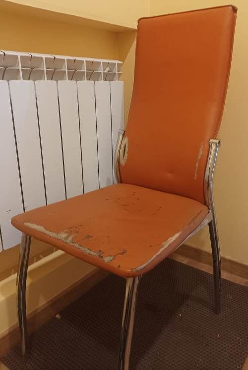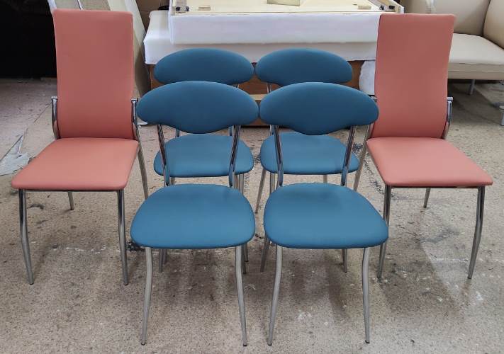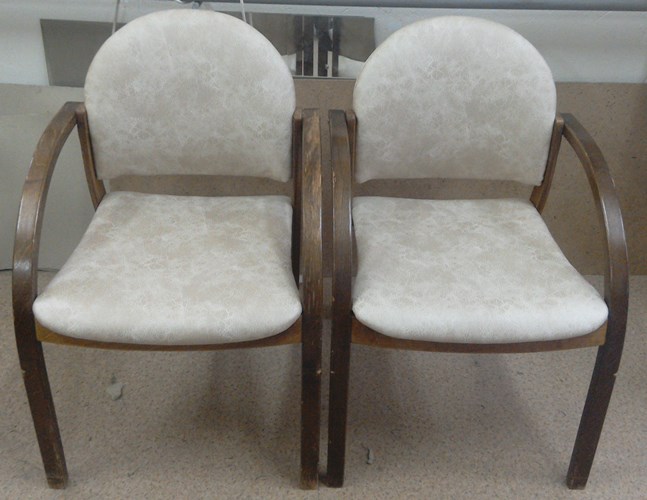*комплект стульев из натуральной кожи отремонтрован - в сиденье порвались корсажные ремни - заменены на новые, более прочные, перетянуты в современную антивандальную искусственную кожу премиум сегмента, цвет максимально подобран к оригиналу.