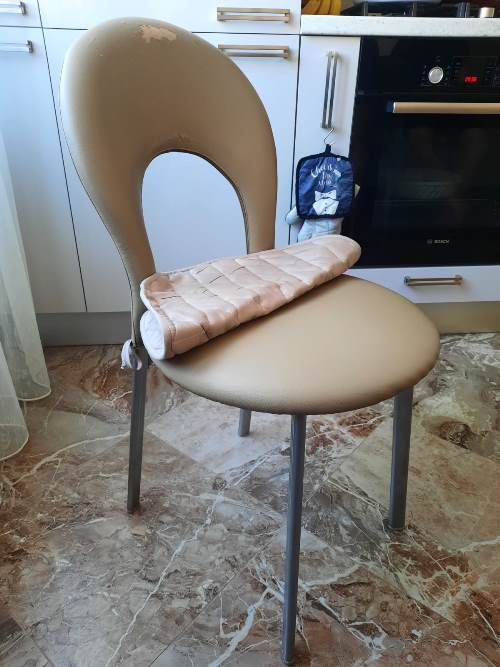 *сентябрь 2023 - кухонные стулья перетянуты в элитную искусственную замшу - очень плотный материал, замечательно чистится, создает видимый объем изделию.