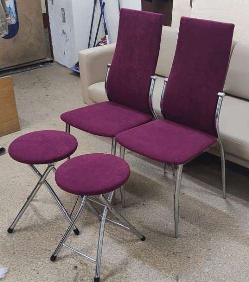 *октябрь 2024 - кухонные стулья и табуреты перетяную в современный велюр вишневого цвета самого модного оттенка этой осени. Приятно, когда заказчики не боятся эксперементировать с цветом и выбирают красивые яркие ткани, взамен стандартным серым и бежевым!