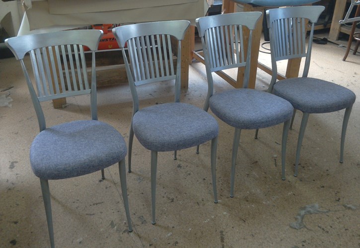 *июль 2021 - стульчики перетянуты в современную рогожку коллекции "Браво", цвет - серебристо-сиреневый - отлично сочетается с корпусом стульчиков цвета металлик.