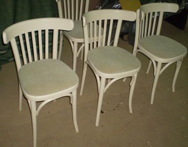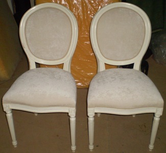 *деревянные части стульев отреставрированы и окрашены в цвет "Слоновая кость", изготовлены новые сиденья из влагостойкой березовой фанеры и перетянуты во флок 12-ой категории.