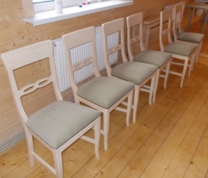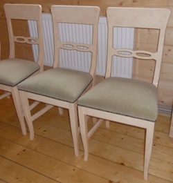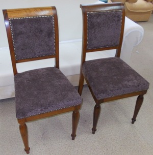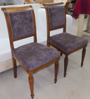 *№1 - стулья из натурального дуба полностью отреставрированы, мягкие части перетянуты во флок на флоке 7-ой категории, №2 - стулья из массива также полностью отреставрированы.