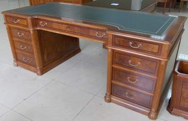 *испанский кабинетный гарнитур был испорчен при переезде (на коже и массиве остались следы скотча, крепежная фурнитура и ручки ящиков были утеряны). А так же, после долгого хранения на холодном складе кожанные элементы покрылись плесенью. Но все было устраненно и мебель приобрела первоначальный вид благодаря итальянским реагентам для реставрации натуральной кожи и умелым рукам наших мастеров.
