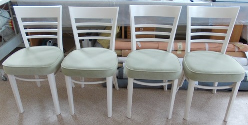 *стулья и "венский" табурет отреставрированы полностью, деревянные элементами покрыты водоэмульсионной краской цвет "слоновая кость", жесткие сиденья сделаны мягкими и обтянуты флоком "умная ткань", которая не боиться никаких повреждений и загрязнений.