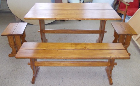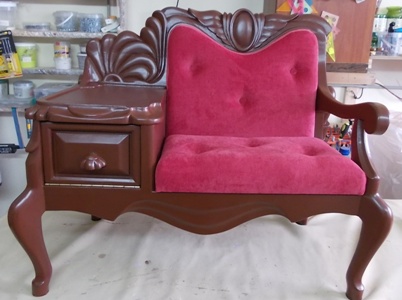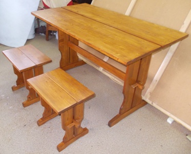 *мебель для бани, сауны или просто, дачной беседки, отреставрирована, склеена и окрашена цветным лаком Белинка, цвет "Орех" полуматовый.