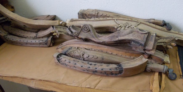Полная реставрация мебели включает в себя: ремонт (полная разборка и склейка), снятие старого покрытия, нанесение нового покрытия, замена наполнителя, перетяжка.