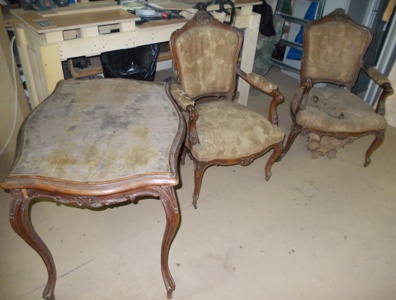 *гарнитур 19-го века из красного дерева полностью отреставрирован после неудачной попытки отремонтировать его с помощью гвоздей, из-за чего были разрушены все соединения. Восстановлены утраченные элементы кресел (ручки) и стола (нижняя опора). Деревянные элементы покрыты матовым лаком. Столешница обтянута натуральной кожей экстра-класса (производство Италия), коллекция "Британия". Остатки пружин и солома в креслах заменены на современный наполнитель Элаблок - срок службы 10 лет до первоначальных изменений. Обивка заменена на жаккард в дворцовом стиле.