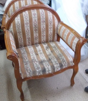 *стулья отреставрированы, нанесено новое глянцевое покрытие, мягкие части перетянуты во флок на флоке 8-ой категории и декорированы молдингом "Старое золото".